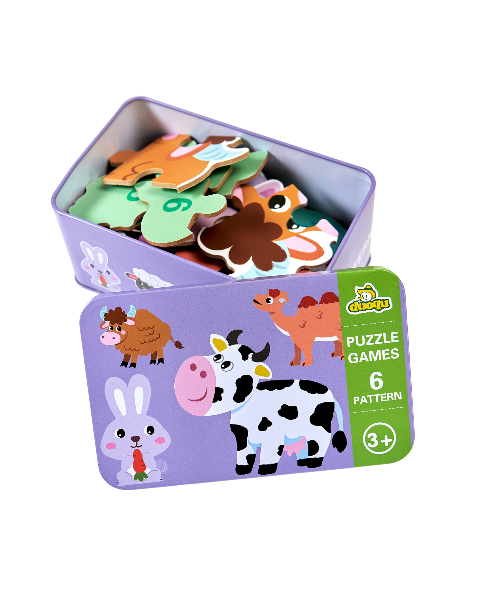 Meet the cutest farm animals with this wooden puzzle set! Each tin includes 6 chunky puzzles with numbered backs, perfect for toddlers to build confidence, practice numbers, and enjoy playtime anywhere.